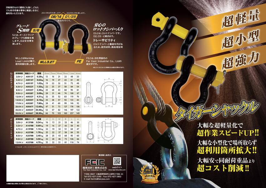 ◇ 軽量、小型、超強力なタイガーシャックルは様々な現場で利用されております。