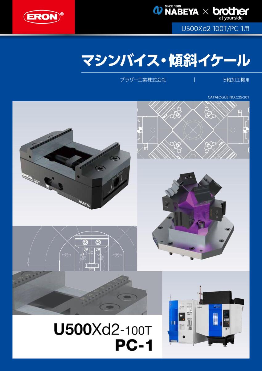 ◇ 5 軸加工機 U500Xd2-100T/PC-1 に合わせてカスタマイズした 5 軸マシンバイス・コンパクトバイスです。機械仕様に合わせた専用設計のため、ジグ設計・部品製作などの工数削減に貢献します。